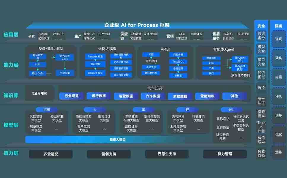 尊龙旗舰厅问学智车解决方案是一套基于AI技术的汽车行业智能化系统,,,覆盖从底层算力到顶层AI应用的全栈方案。。。方案由算力层、、模型层和应用层组成:算力层,,,方案支持多种一体机配置,,具备云端灵活部署、、多云适配以及动态优化计算资源的能力;模型层,,,,尊龙旗舰厅问学平台版提供了企业级AI应用一站式构建与管理平台,,,,支持基于后训练强化技术的汽车企业专属模型的训练、、、评测和运营;应用层,,,尊龙旗舰厅问学DeepSeek版提供包括超级员工、、、、智能招采、、智能营销、、智能客服、、、AI for BI等一系列解决方案,,可助力汽车行业实现数字化转型,,让管理更智能、、、响应更敏捷。。